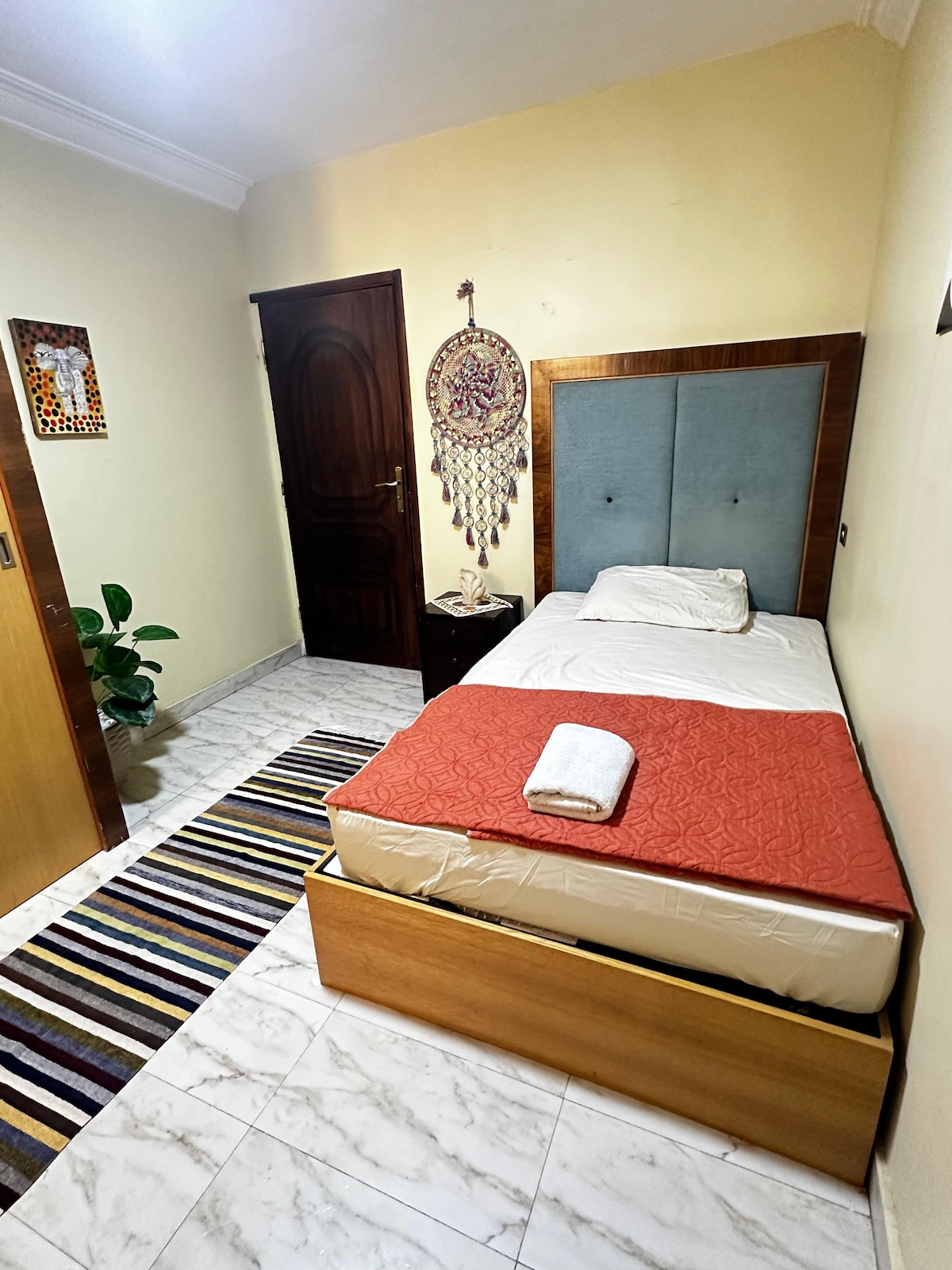 Our place is in Maadi, a green suburb of Cairo, near the nile corniche. Wake up to decades-old beautiful trees that Maadi is famous for. You’ll love our place on the top floor of our building. In our place you can enjoy a large, private terrace, from which you can admire bright red sunsets over the rooftops after a busy day touring Cairo. You can access shops and restaurants by foot or any place further away by taxi, Uber or Metro. Our place is good for 1 or 2 tourists and business travelers.