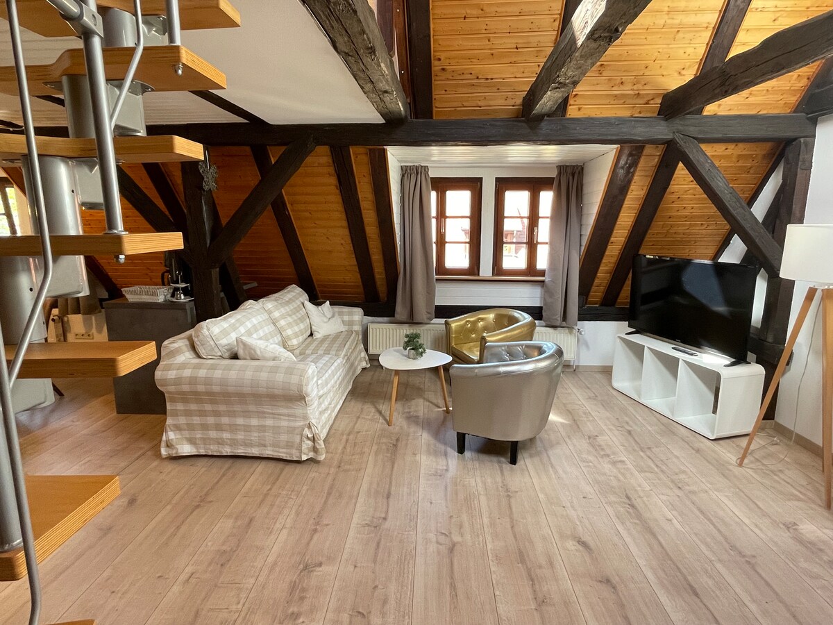 In einem liebevoll sanierten, denkmalgeschützten Dreiseithof liegt die Gästewohnung im oberen Teil des ehemaligen Stallgebäudes. Nur ein paar Schritte zum Hof hinaus und schon seid ihr mitten im Grünen: im wunderschönen Muldental laden Landschaft und verschiedene Sehenswürdigkeiten zu ausgedehnten Spaziergängen, Radtouren und Ausflügen ein. Das Dorf Höfgen liegt zwischen Leipzig und Dresden und zählt mit seinen denkmalgeschützten Fachwerkhäusern zu den schönsten Dörfern Sachsens.