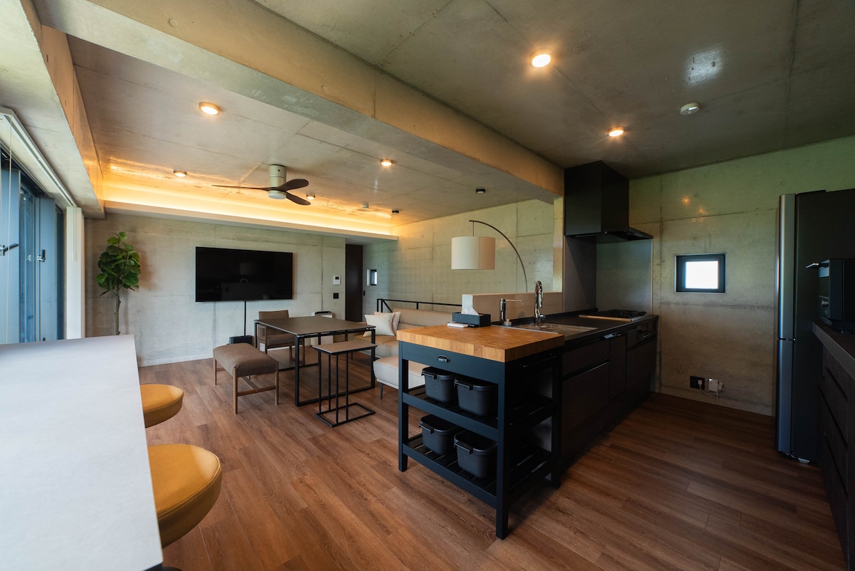Das Meer vor Ihnen hat eine einzigartige gradationelle blaue Farbe, die typisch für Okinawa ist. Dieses wunderschöne Meer können Sie von überall in Ihrer Unterkunft aus sehen. Es ist eine luxuriöse Villa mit einem beheizten Pool und einem Whirlpool auf dem Dach, die als kompletter privater Raum nur für eine Gruppe vermietet wird. Trotz der Lage direkt am Meer ist die Unterkunft gut angebunden. Das geschäftigste Einkaufsviertel Miyakojimas, Restaurants und ein 24-Stunden-Supermarkt sind nur 5 bis 10 Autominuten entfernt. Ob als Paar, Familie oder mit Freunden, wir können alle Bedürfnisse erfüllen. Genießen Sie einen Aufenthalt, der auch für Flitterwochen geeignet ist. * Bei 2 Personen steht ein Kingsize-Bett zur Verfügung, bei 3 Personen ein Kingsize-Bett und eine Einzel-Futonmatratze, bei 4 Personen ein Kingsize-Bett und zwei Einzel-Futonmatratzen. * Je nach Wetterlage und Temperatur, insbesondere im Winter, ist das Baden im Pool schwierig. Wir bitten um Ihr Verständnis.