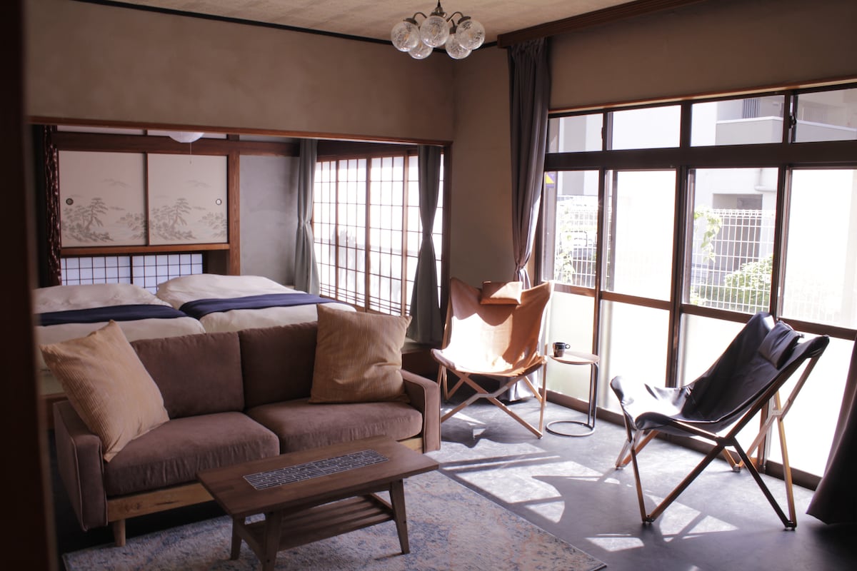 Das ganze Gebäude gehört dir! Entspanne dich mit Freunden und Familie an einem ruhigen Ort und einem ruhigen Gasthaus. Du kannst auch grillen. Das Zimmer verfügt über ein separates Wohnzimmer, ein Zimmer im japanischen Stil und ein Zimmer im westlichen Stil, sodass du dir sicher sein kannst, wenn du eine andere Zeit zum Schlafen hast. Bitte kontaktiere uns auch für eine große Gruppe von 5 oder mehr Personen. Es gibt viel schöne Natur innerhalb von 10 Minuten, Parks und Wanderwege. Internationale Wettbewerbe und Surfspots sind ebenfalls in der Nähe verstreut, was es zu einem Paradies für Surfer macht. Es gibt ein Holzdeck und einen Garten, sodass du den Vögeln beim Zwitschern lauschen und deine Kaffeezeit genießen kannst, während du den Sonnenaufgang eintauchst. Es ist großartig, Bier zu trinken, während du wunderschöne Sonnenuntergänge beobachtest.Im Winter ist der Sternenhimmel sehr schön und schön. Du kannst eine entspannte Zeit damit verbringen, Musik zu spielen, ohne dir Sorgen um die Nachbarschaft zu machen und Grills und Lagerfeuer zu genießen.