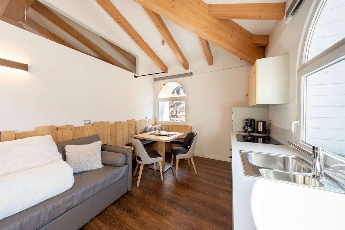 Apartments in exclusive and privileged location with all the comforts. Suites of brand new building dedicated to the main protagonist of the history of Hotel Faloria. Located on the top floor of the property, overlooking the main squares of Moena. Decorated with taste and the typical refinement of the mountain houses, they have all the comforts and services offered by Hotel Faloria. Unique solutions, in the heart of Moena.