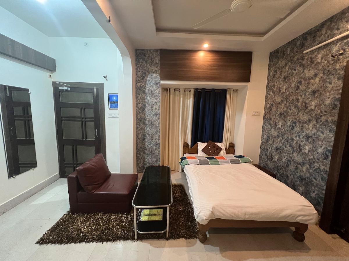 Welcome to our cozy penthouse on the second floor, with private entry and a charming patio. The home offers 2 air-conditioned bedrooms, each with a King bed, 2 bathrooms (one attached, one in the living room), a kitchen with RO water filter, and a small common area with a refrigerator. High-speed Airtel Wi-Fi and a work desk are also provided. Please note: If booking for 1-2 guests, 1 bedroom and bathroom will remain closed for a more tailored experience.