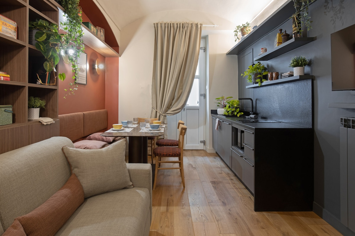 🌿 Entspannen Sie sich in dieser gemütlichen und romantischen Wohnung, die sich in einem kleinen Mehrfamilienhaus in einer der zentralsten und historischsten Straßen von Turin befindet. Dank der außergewöhnlichen Lage können Sie die wichtigsten Sehenswürdigkeiten der Stadt zu Fuß erreichen und nach einem Tag voller Besichtigungen und Spaziergänge ... brauchen Sie nicht lange, um nach Hause zu kommen und sich einen Moment der Ruhe und Entspannung vor dem Kamin zu gönnen, ein gutes Buch zu lesen oder ein Glas Wein zu trinken.