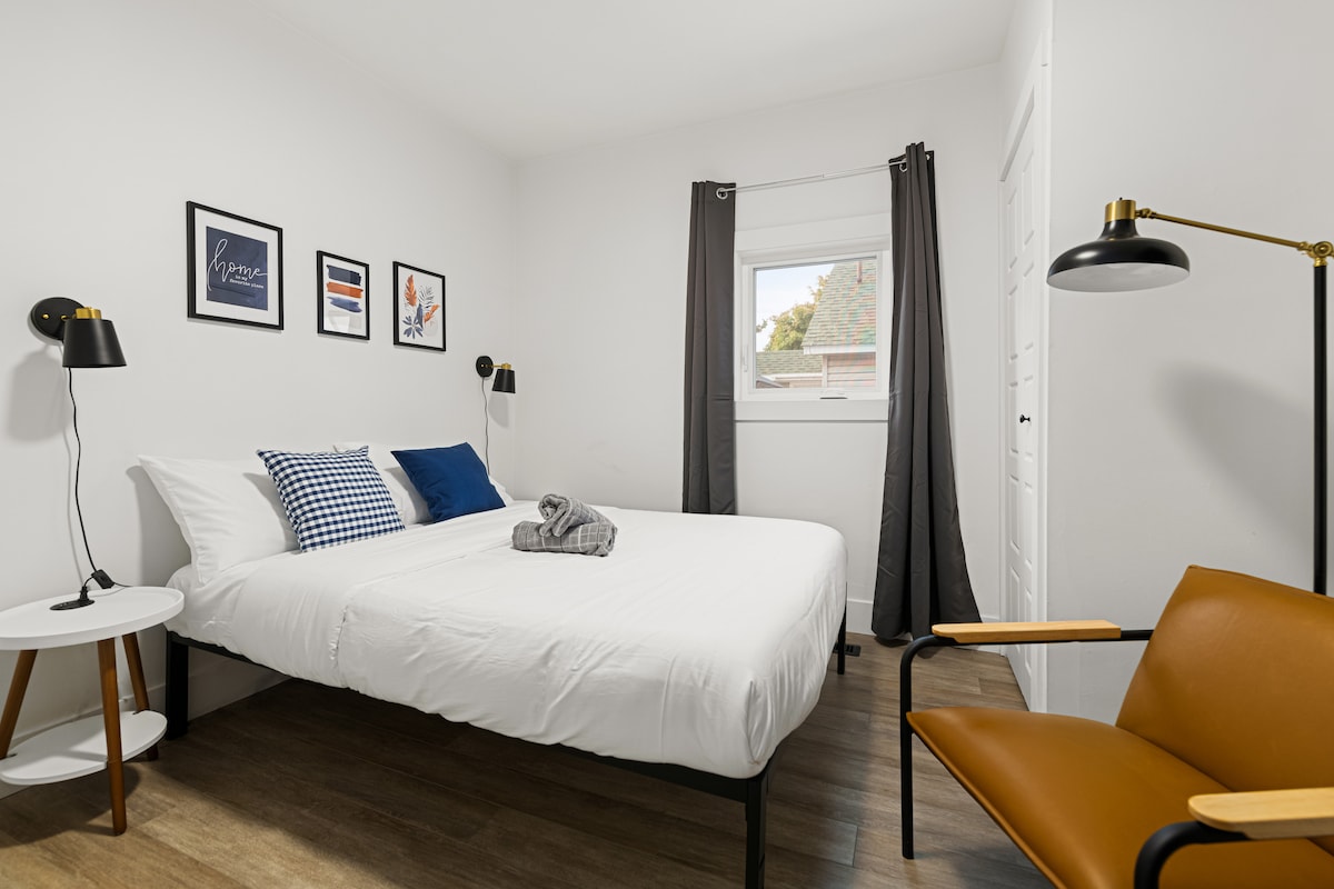 Willkommen in unserer gemütlichen 1-Zimmer-Souterrain-Suite, die in einer ruhigen Nachbarschaft in Moncton liegt. Dieser charmante Raum bietet einen perfekten Rückzugsort für Alleinreisende oder Paare. Die Unterkunft Es verfügt über einen eigenen Eingang, ein komfortables Queensize-Bett, ein komplettes Badezimmer, eine Küchenzeile, WLAN und kostenlose Parkplätze. Schneller und einfacher Zugang zum Flughafen, zu öffentlichen Verkehrsmitteln, Parks, Geschäften und Restaurants. Beliebte Orte in der Umgebung: Flughafen - 7 Minuten Champlain Mall – 7 Minuten Walmart – 7 Minuten Supermarkt – 8 Minuten