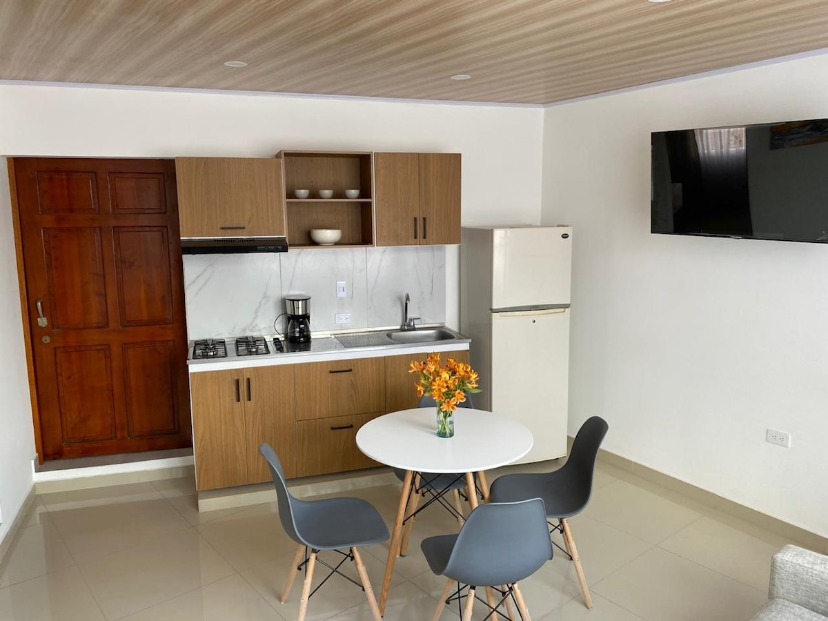 Genießen Sie ein Studio-Apartment in einer ruhigen und zentralen Lage, nur wenige Schritte von der Plaza Mayor entfernt. Tolle Lage, gegenüber dem Schokoladenmuseum. Es ist ein schönes Loft in einem Aparthotel, das sich im Hauptblock von Villa de Leyva befindet und über ein eigenes Bad mit Warmwasser, WLAN, Kabel-TV verfügt und völlig unabhängig ist. Es verfügt über eine Mini-Küche, um einige grundlegende Lebensmittel zuzubereiten. Es gibt auch einen kleinen Kühlschrank. Mit einer herrlichen Aussicht, ruhe dich besser aus als zu Hause 🩷