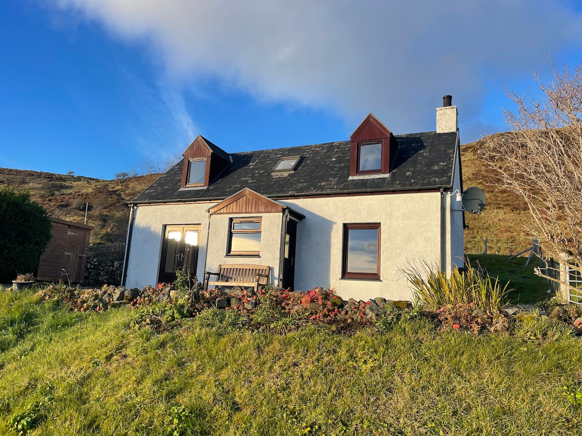 Skye House Annexe is a delightful, cosy space for two. Wood clad, slate roofed annexe, set on croft land adjacent to a residential home. An ideal base to explore the stunning Isle of Skye and to then come home to relax and sit whilst watching the sun setting. Parking, wifi, double bed, combination oven (microwave, convection, grill), portable hob, kettle, toaster, fridge, dining area, elec heating, shower and bathroom, tv freesat channels, speaker, usb charging. Outdoor seating and table.