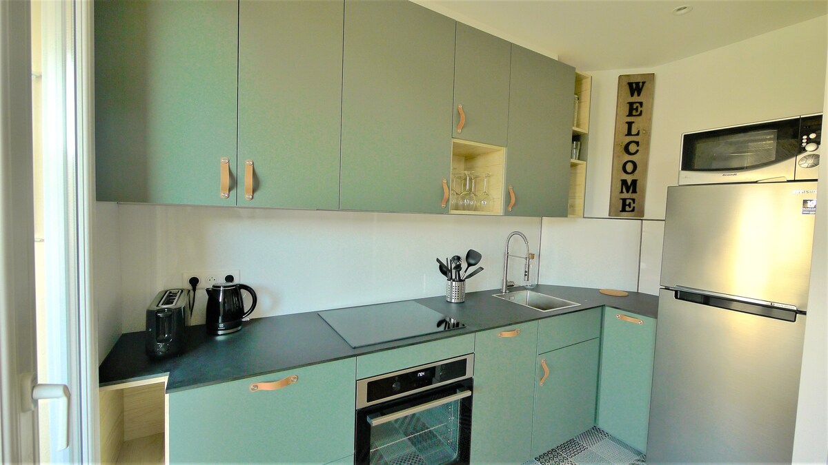 Joli T2 proche mer, aéroport, climatisé, parking