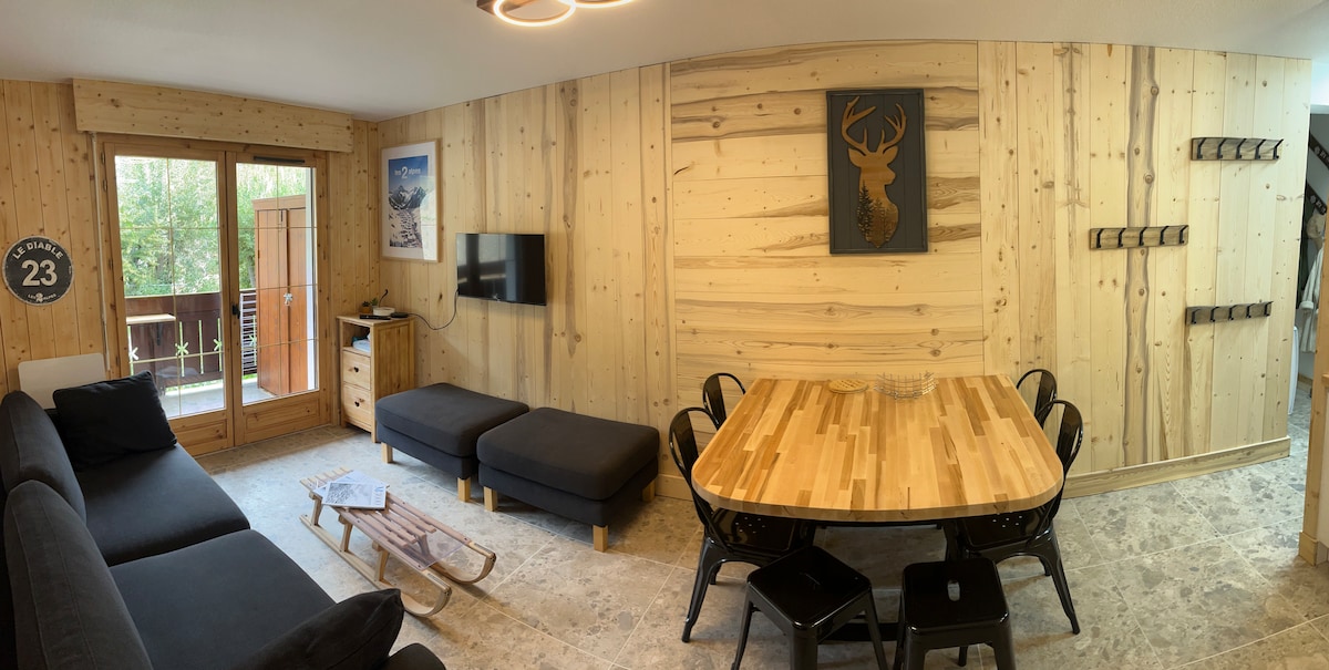 Superbe appartement sur commune des deux Alpes entièrement refait à neuf en 2021 et modernisé en 2025. En dernier étage d'une petite résidence calme proche du centre historique des 2 Alpes. Vous serez éblouis par la vue à couper le souffle et le panorama à 180 degrés sur la station d'un côté et la Muzelle de l'autre. Appartement entièrement et fraîchement rénové de façon moderne et design avec des matériaux de qualité. Nous aurons plaisir à vous faire partager notre havre de paix !