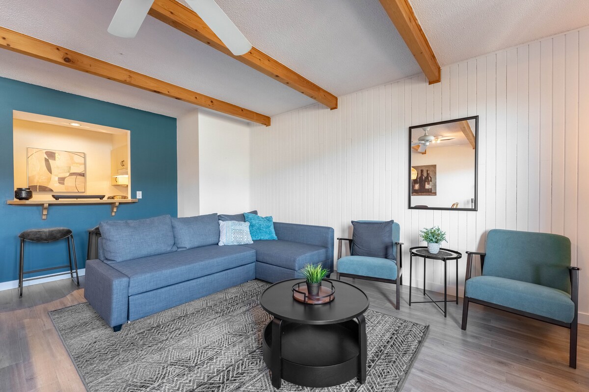 Welcome to our place on the hill! Our stylish home is completely renovated and includes brand new furnishings throughout as well as thoughtful storage for clothes and ski equipment. We have a Queen sized bed in the bedroom and the sofa bed in the living room opens to a Queen sized bed also. We provide all the amenities you will need including dishes, pots, towels, linens, soap, shampoo etc. We're located about 500 feet from the gondola. Parking is right out front. You will love it here!