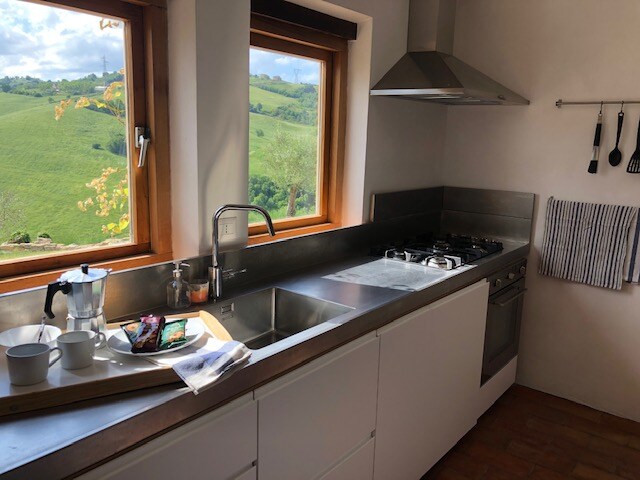 Ein gemütliches renoviertes traditionelles Steinhaus, umgeben von einer Landschaft mit atemberaubender Aussicht und Holz~ befeuertem Whirlpool. Es ist abgelegen und friedlich, aber nur eine 5-minütige Fahrt vom lokalen Dorf und den Annehmlichkeiten entfernt. In 35 Minuten mit dem Auto bist du im Sibillini-Nationalpark oder in die andere Richtung der Adriaküste. Zahlreiche lokale Restaurants innerhalb von 20 Minuten, die fantastisches Essen servieren. Wenn du gerne spazieren oder wandern, Radfahren, Einkaufen oder einfach nur entspannen möchtest, ist dies ein großartiger Ort.