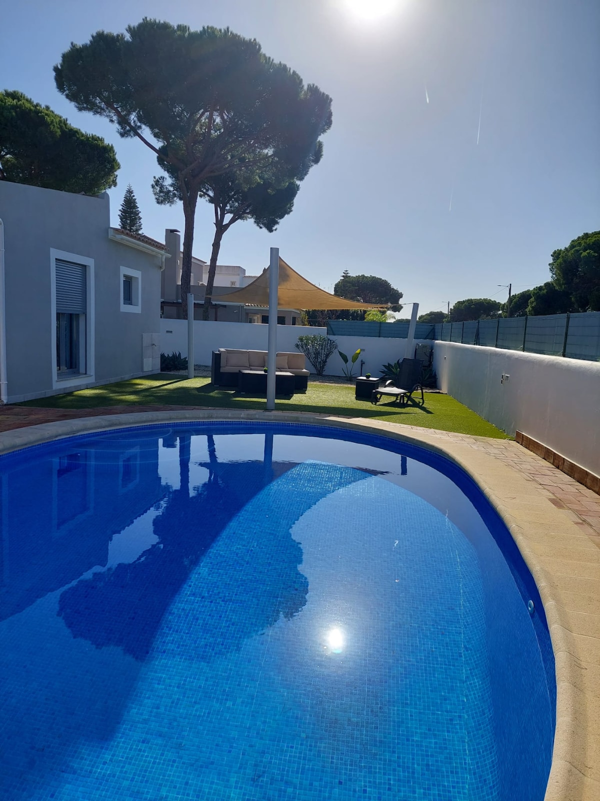Discover modern Mediterranean-inspired living at this exquisite villa in Santa Bárbara de Nexe. Minutes from Faro Airport and Almancil, this serene retreat offers a heated pool, rooftop jacuzzi, seamless indoor-outdoor living, an outdoor kitchen, and elegant Mediterranean-style interiors. Perfect for families, couples, or groups seeking a memorable getaway with hiking trails, countryside views, and access to beaches, golf courses, shopping, and dining.” Send us a message !