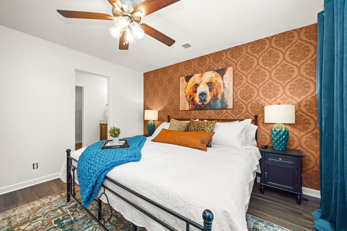 Unser Haus mit 3 Schlafzimmern und 2,5 Bädern liegt 8 Minuten von Fort Campbell und 13 Minuten von der Innenstadt von Clarksville entfernt und ist perfekt für Familien und kleine Gruppen. Genieße einen eingezäunten Garten, eine Feuerstelle, eine Kinolounge mit 65-Zoll-4K-Fernseher und ein Spielzimmer in der Garage mit Tischfußball, Tischtennis und Basketball-Arcade. Im Inneren findest du auch Airhockey, einen Arbeitsbereich und eine voll ausgestattete Küche. Wir stellen Ihnen genügend Kaffee, Toilettenartikel und Wäschezubehör zur Verfügung, um Ihnen den Einstieg zu erleichtern.