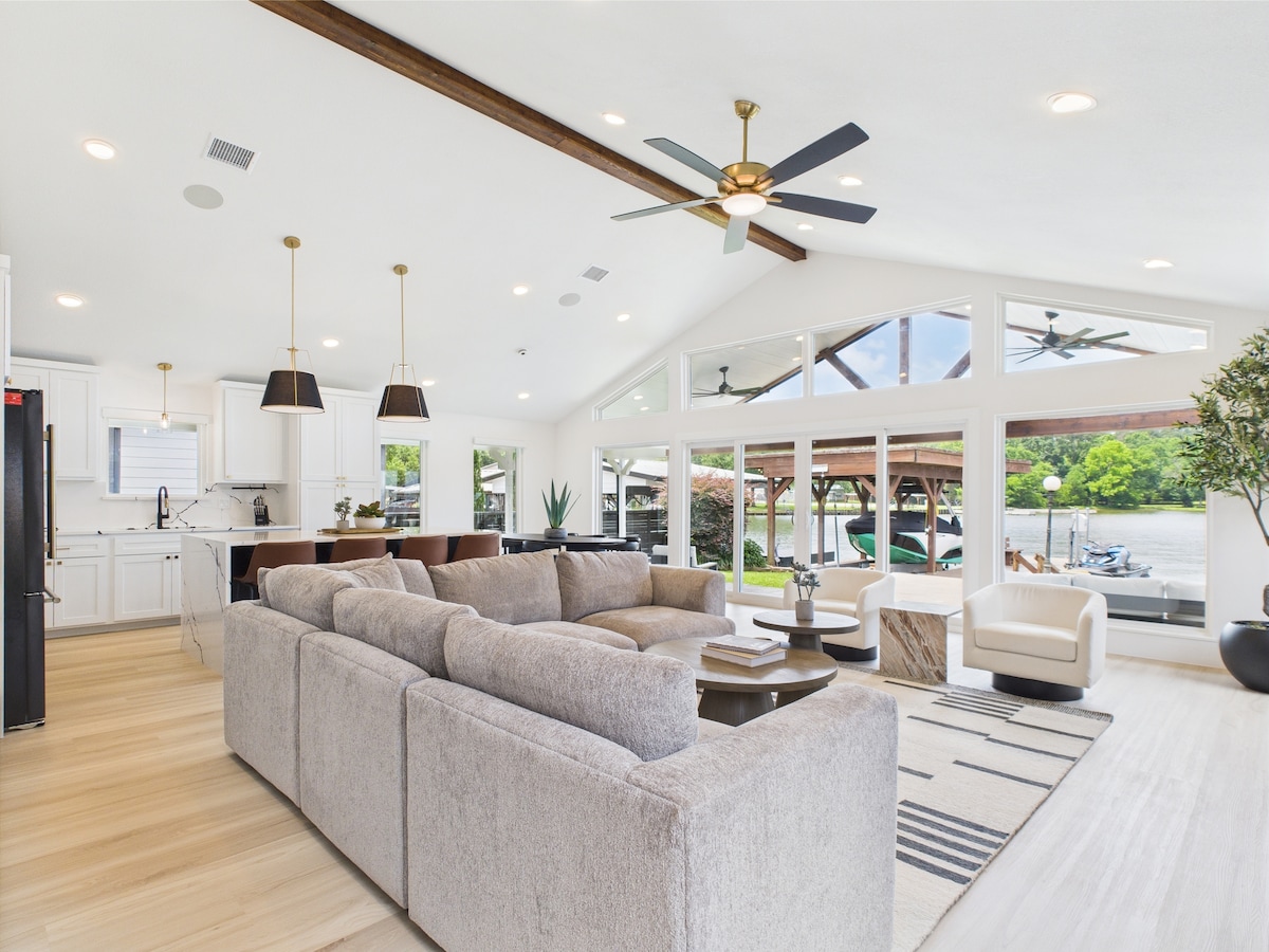Entspannende und unterhaltsame Schönheit am See! BRANDNEUES Boot & Waverunner sind vor Ort und können gemietet werden. Fische, SUP, Schwimmen, Lagerfeuer & Grillen in einem ruhigen, privaten Kanal. 3000 Quadratfuß, einstöckiges, offenes Konzept Haus mit herrlichem Seeblick. Hell, stilvoll, komplett möbliert und reichlich Annehmlichkeiten – wenn sie nicht im Wasser sind, lieben Kinder das Etagenzimmer und das Spielzimmer in der Garage mit Pickleball, Tischfußball, Tischtennis, Fahrrädern, Cornhole und mehr! Das Dock, die Außenküche, Kajaks, SUPs und Rettungswesten stehen dir zur Verfügung!