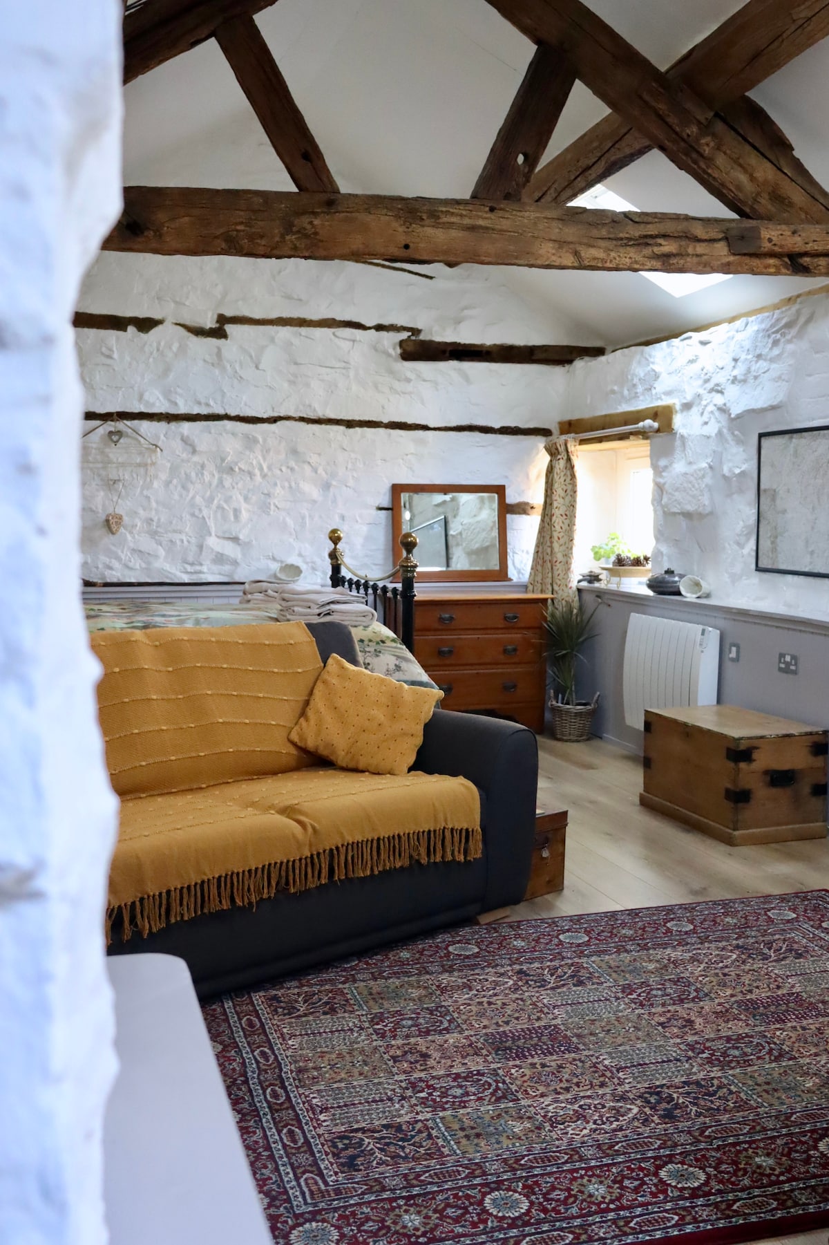 Kleine Scheune inmitten einer funktionierenden Milch- und Schaffarm direkt neben unserem Haus mit fabelhaften Spaziergängen rundherum. Doppelbett mit kleinem Duschraum und Mini-Küchenbereich in der Ecke des Zimmers. Ideal als Ausgangspunkt für Wanderungen oder wenn du in der Gegend arbeitest. Gute Parkplätze direkt vor der Scheune – Fahrzeuge können stehen bleiben, während du die herrlichen Hügel erkundest. Gekochtes Frühstück im Esszimmer im Bauernhaus für 10 £ pro Person – beinhaltet die Auswahl an Wurst, Speck, Eiern usw.