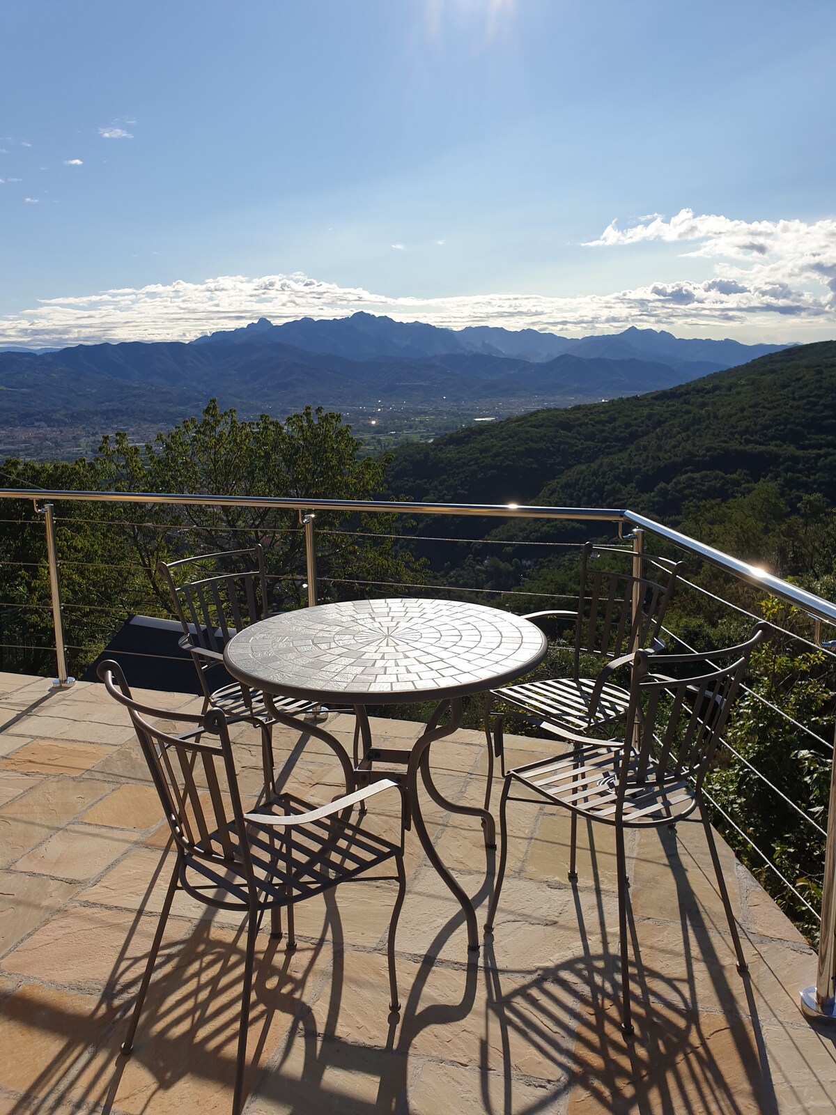 Herrliche Aussicht von der Terrasse auf die Apuanischen Alpen