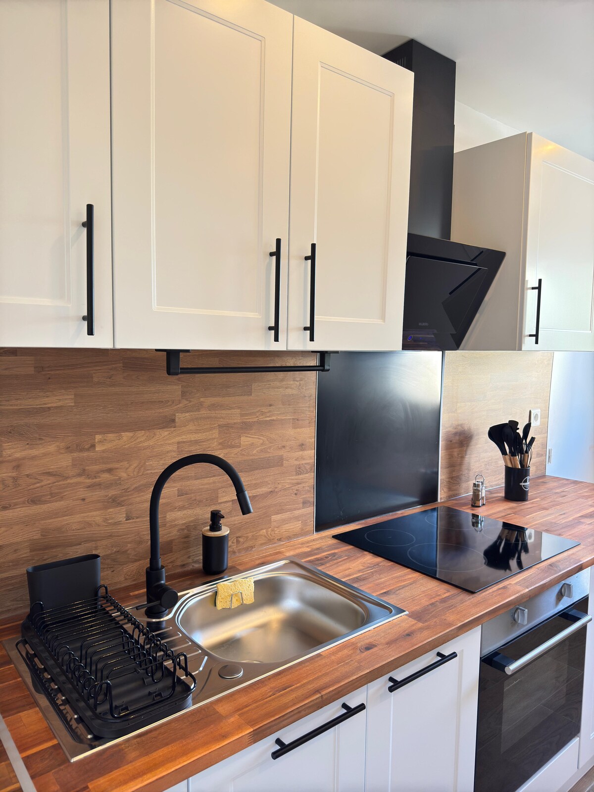 Studio unter unserer Flagge, völlig unabhängiger Zugang. Sie verfügen über einen Kleiderschrank, Kleiderbügel und Regale. Separates Badezimmer mit begehbarer Dusche, Waschbecken, Stauraum, Haartrockner, Handtüchern, Waschmaschine mit Wäscheständer. Kochnische mit Kühlschrank, Kochfeld, Backofen, Mikrowelle, Senseo-Kaffeemaschine, Wasserkocher, Toaster, notwendige Küchenutensilien zur Zubereitung von Mahlzeiten. 1 Bett 2 Personen + Schlafsofa, Bettwäsche vorhanden. Fernseher, WLAN-Zugang.