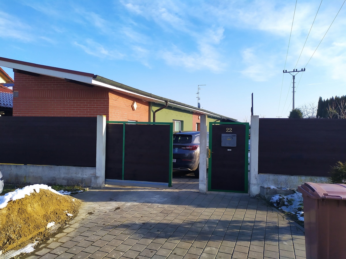 Neue klimatisierte Loft-Wohnung für 2-3 Personen, wir ergänzen das Zustellbett entsprechend der Anzahl Personen auf Anfrage im Voraus. Wir bereiten das Kinderbett auf Anfrage vor. Enthält eine möblierte Küche zum einfachen Kochen, Badezimmer mit WC. Aus Gründen der schlechten Erfahrung bieten wir Gästen nur Unterkünfte mit mindestens drei positiven Bewertungen und Empfehlungen von anderen Gastgebern an. Die Unterkunft bietet Ruhe und Privatsphäre, die Vorderseite des Gartens mit Sitzbereich, eine Pergola mit Grill, Fahrradaufbewahrung. Sicherer Parkplatz hinter einem elektrischen Tor.