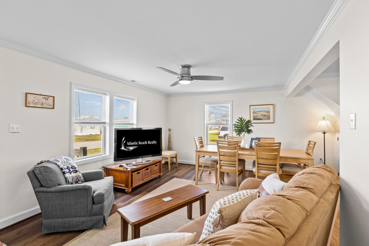 Welcome to AB Sea Digs! This cozy 2BR coastal cottage sits third row from the ocean in Atlantic Beach, NC, part of the Southern Outer Banks. Just four houses from the sand, it’s perfectly placed for easy beach days and ocean breezes. Enjoy bright interiors, an outdoor shower, and a shed stocked with beach chairs and a wagon for simple, carefree coastal living.