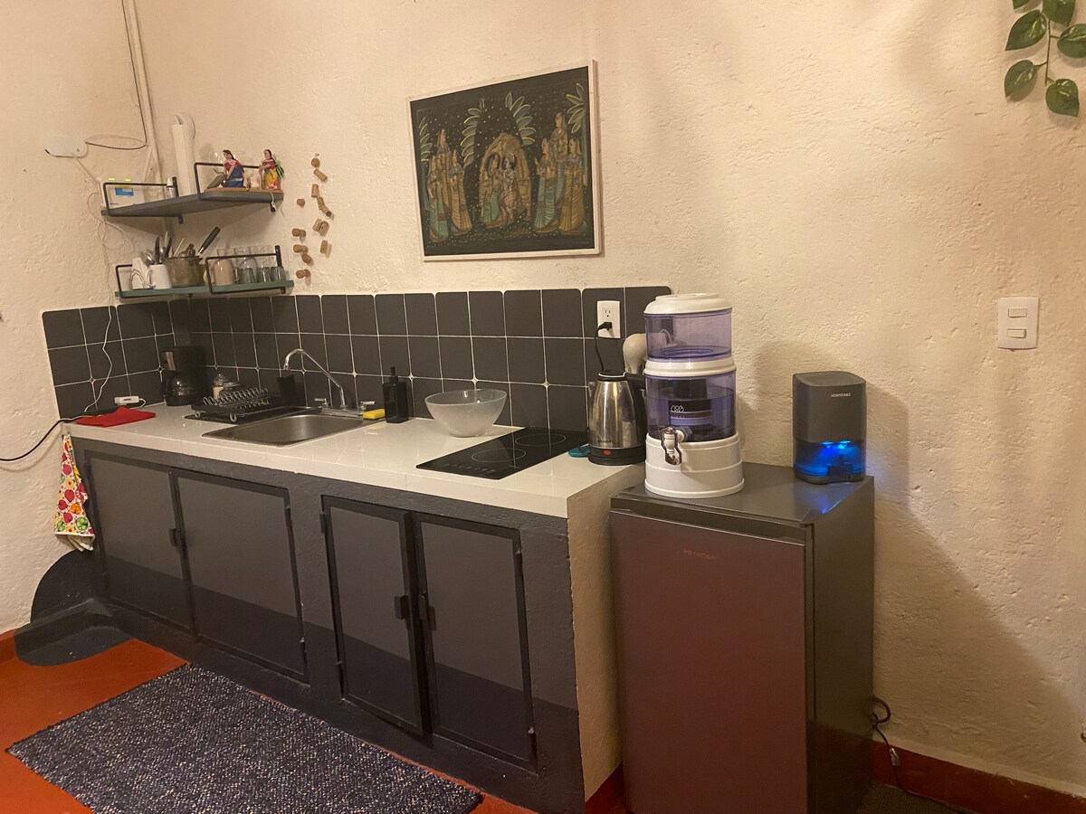 Lernen Sie Cuernavaca kennen und entspannen Sie sich in unseren ruhigen und komfortablen Räumen in Casa Maria Airbnb's. Trauen Sie sich zu lesen, Kaffee/Tee in den Gärten oder Gemeinschaftsbereichen zu trinken, während Sie ein Buch lesen oder Homeoffice machen, die nur einen Schritt von der Wohnung entfernt sind. Idealer Ort auch, wenn Sie zur Arbeit oder zum Studieren kommen und es hat alles, um etwas Einfaches zu kochen. Wir befinden uns nördlich von Cuernavaca, aber hier sind die Entfernungen kurz, also keine Sorge, du hast alles in der Nähe.