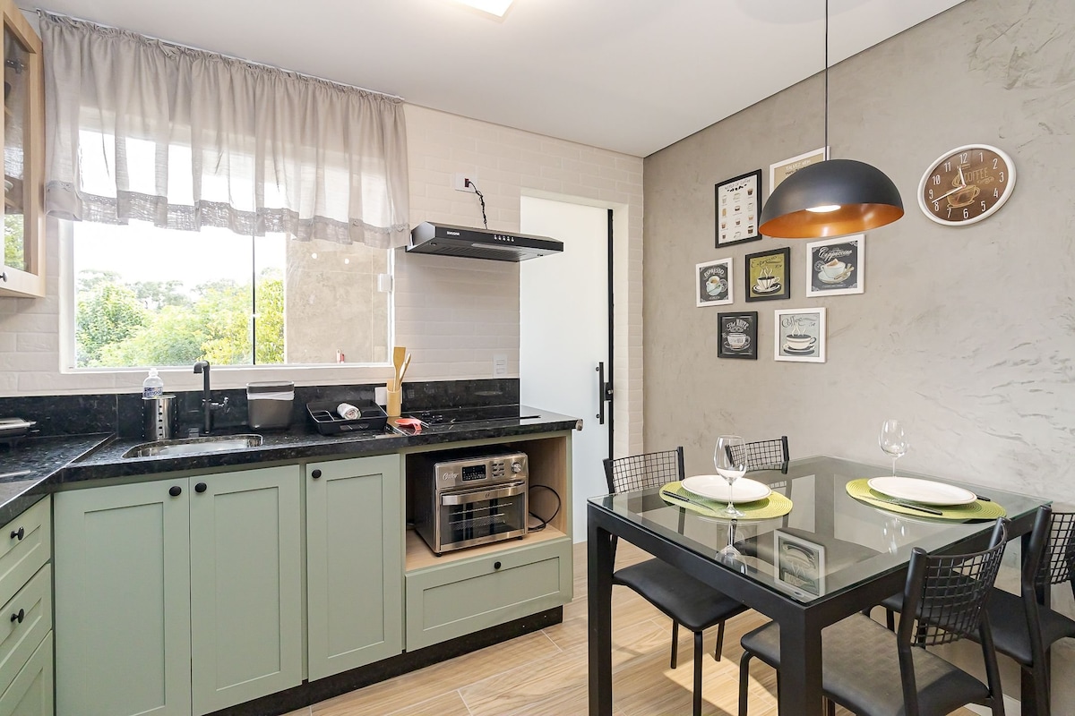 Wir haben dieses charmante Studio geschaffen, damit Sie ein unvergessliches Erlebnis haben, wenn Sie Curitiba besuchen. Es liegt am Eingang des Botanischen Gartenparks und in der Nähe der UFPR und FIEP. Bietet bequem Platz für bis zu 3 Personen. Gemütliche Atmosphäre mit: - Klimaanlage warm/kalt - Schlafzimmer, Wohnzimmer und Küche integriert - Queensize-Bett - SmartTV - WLAN - Bügeleisen und Bügelbrett - Haartrockner - Minibar - Bettwäsche, Handtücher, Kissen, Decken - PARKPLATZ auf geschlossenem Gelände neben dem Studio