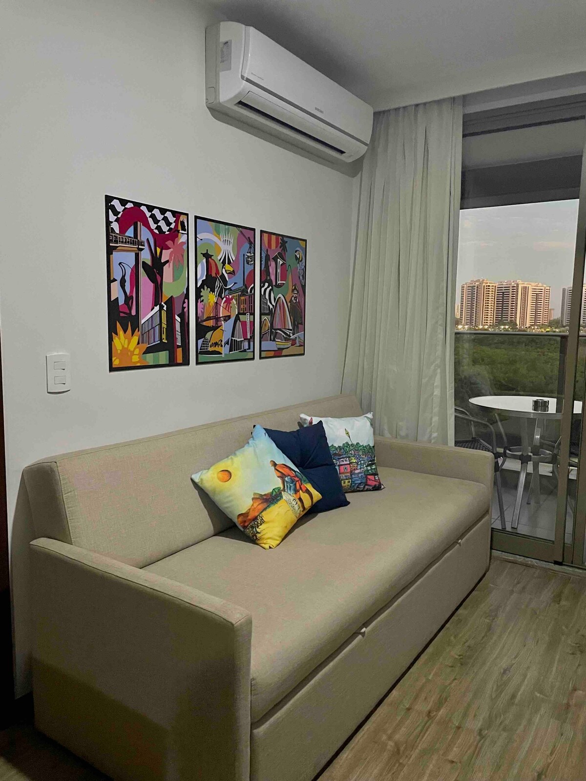 Sala com varanda , cozinha e área integrada e uma linda suíte, confortável e próxima ao Rio Centro, novinho e pronto. No condomínio temos academia, restaurante com café, almoço e jantar e um mini mercado. No hall de entrada do apt existe uma câmera de segurança monitorando a entdo apt. Distancias pontos do RJ Rio centro - 1km, Jeuness Arena - 4km, Praia Recreio 4km - Praia Barra - 10km, Engenhao - 10km, Maracanã 15km, Pao de acucar - 30km e Cristo 20km Aerop Tom Jobim ou Santos Dumont 35km