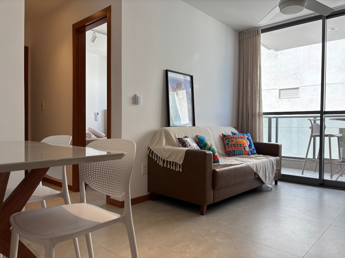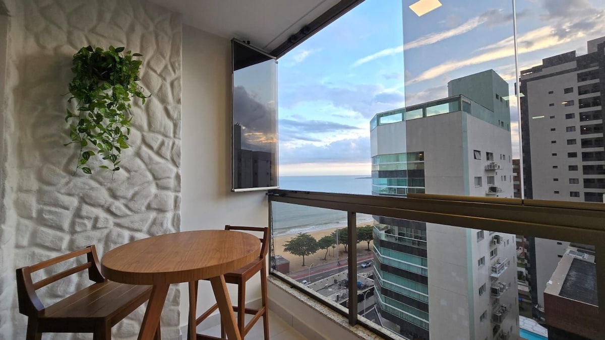 Geräumiges Zimmer, Wohnzimmer und Balkon, mit privilegiertem Blick auf das Meer, obere Etage, 50 m vom Strand entfernt. Smart-TV, der zwischen Schlafzimmer und Wohnzimmer mit Netflix geteilt wird, WLAN 360 Mbit/s. Private Garage. Poolbereich, Grill und Fitnessraum in der Wohnanlage. Mit einem charmanten und komfortablen Raum für Ihren Aufenthalt an einem der schönsten Strände der Stadt Vila Velha. Einfacher Zugang zu den verschiedenen Sehenswürdigkeiten der Stadt.