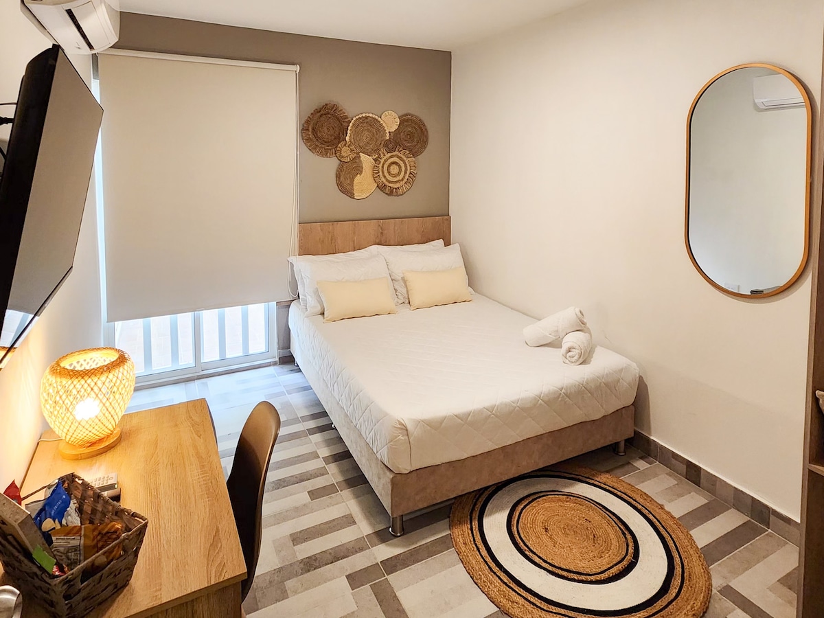 Stay in this elegant accommodation and enjoy a hotel-style experience with the comfort of a private apartment inside Estelar Hotel Bocagrande. Guests have access to the swimming pool, gym, restaurants, and Colombia’s highest rooftop bar on the 51st floor, offering spectacular views. The beach is just steps away, along with restaurants, shopping centers, and Cartagena’s main attractions. Enjoy a unique stay in one of the city’s most exclusive areas.
