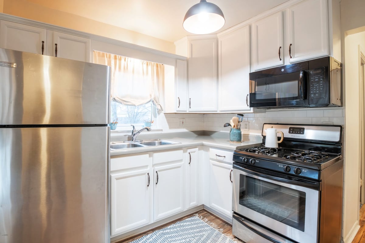 Nestled in a beautiful 1890s duplex, this 2BR/1BA unit blends original details with modern amenities. Highlights: Flexible Stays: Perfect for visitors & temporary residents. Unique Charm: Modern meets historic details. Spacious Comfort: Relax in 1200 sq ft. Wrap-around Porch: Enjoy the outdoors (main floor only!). Hardwood Floors & Amazing Kitchen: Style & functionality. Heated Bath Floors & 100" Projector TV: Luxurious comfort & entertainment. Experience Morton's charm. Book today!
