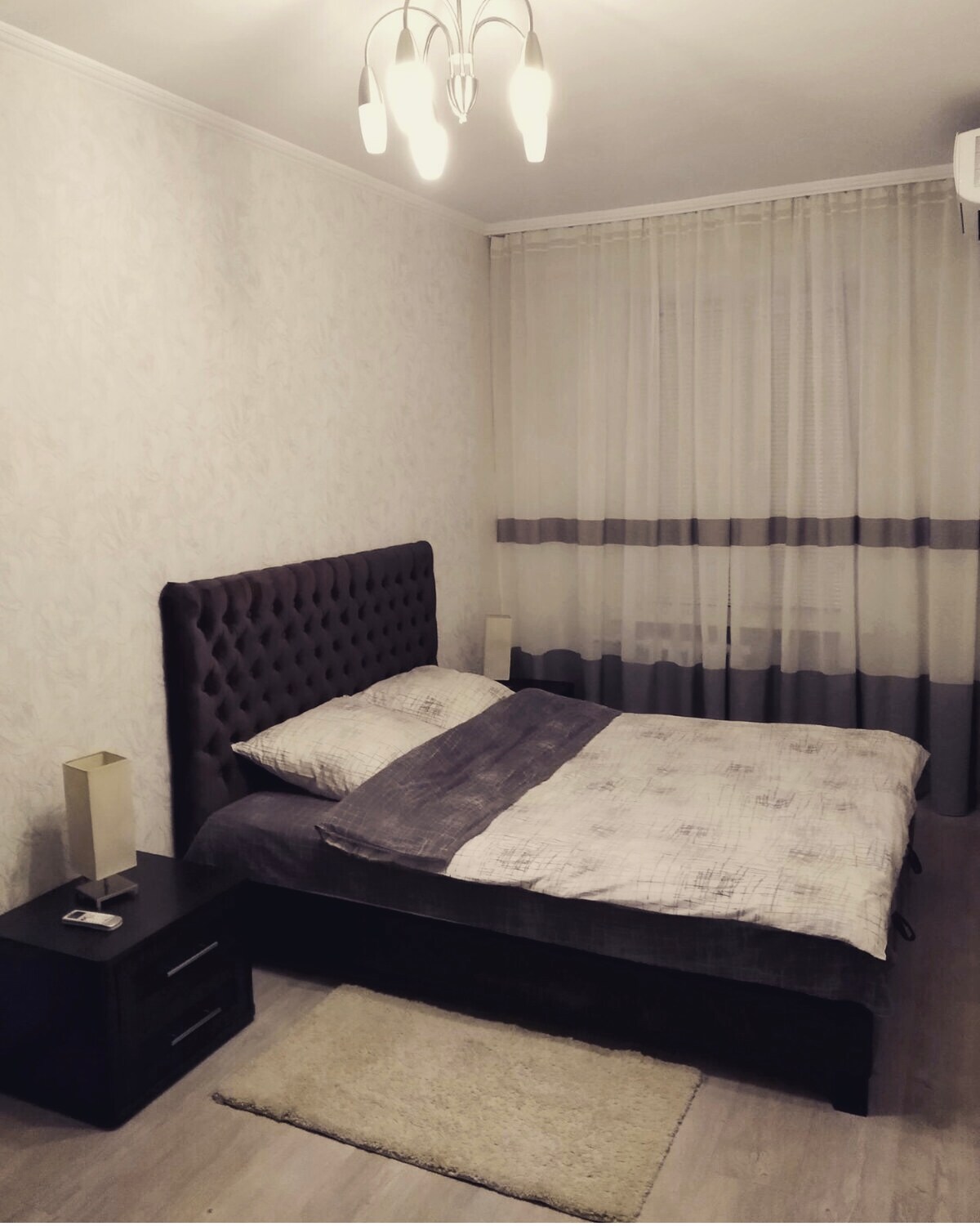 Apartments in a one-storey private house with new renovation and modern home appliances. During power outages we switch on an inverter – it keeps the internet, heating and lighting in the house working. There is also a generator as an additional backup. Private parking for your car. Convenient location almost in the center of Dnipro, with bus and tram stops nearby.