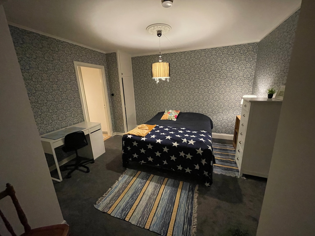 För dig som vill vara nära centrum men stanna i ett lugnt och charmigt område! Denna lägenhet är en stor etta på markplan med kök, en toalett och dusch! Här har vi en dubbelsäng (180cm) och en bäddsoffa (120cm)! En mysig liten uteplats med grill och en fin promenad precis utanför lägenheten! Det finns även en liten tv med cromecast! Porslin, glas, bestick, stekpannor + diverse ”prylar” finns att nyttja!