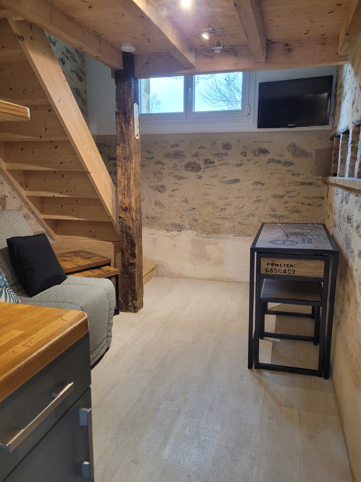 La case à poules 2*: Atypisch und einzigartig! Ehemaliger Hühnerstall, umgewandelt in ein 28 m² großes Studio mit Blick auf den See Moulin Papon (6 km vom Stadtzentrum entfernt). Sie haben ein Schlafzimmer im Zwischengeschoss, ein Badezimmer mit WC, ein Wohnzimmer (mit TV und Schlafsofa) eine Küche (klassische Kaffeemaschine + Nespresso, Mikrowelle/Grill, Spüle, Toaster, 2 Gasplatten, Backofen, Wasserkocher), Plancha und Grill. Möglichkeit des Studententarifs (im Praktikum oder dualer Ausbildung): Montag bis Freitagmorgen, von Oktober bis Mai
