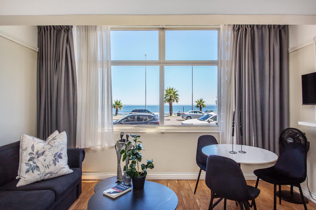 Diese erhabene kleine Studio-Wohnung ist eine Feier der einfachen Freuden des Lebens – im Bett liegen und dem Meer zuhören; auf der Couch ausgestreckt lesen; Filmabend auf dem Schlafsofa. Sie ist auch ideal für die Fernarbeit mit ihrem starken und unbegrenzten Glasfaser-WLAN. Gehe aus deiner Tür auf die Promenade und es ist nur ein sehr kurzer Spaziergang vom V&A, Green Point Park, dem Oranjezicht Markt entfernt... ganz zu schweigen von den Cafés, Restaurants, Stränden und Bergen. Mach weiter, gönn dir was!