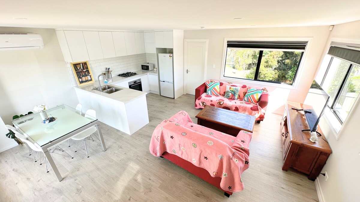 Fully self-contained studio flat in the perfect location for those either exploring Auckland or here for business. With a comfortable queen bed, fully equipped kitchenette, guest laundry, and modern bathroom, this is perfectly suited to a single or couple. Find your sanctuary away from the buzz of the city, while still being close to all of the best attractions and necessities of Auckland. Auckland Airport is only 23-minutes drive away and the CBD only a 13-minute drive.
