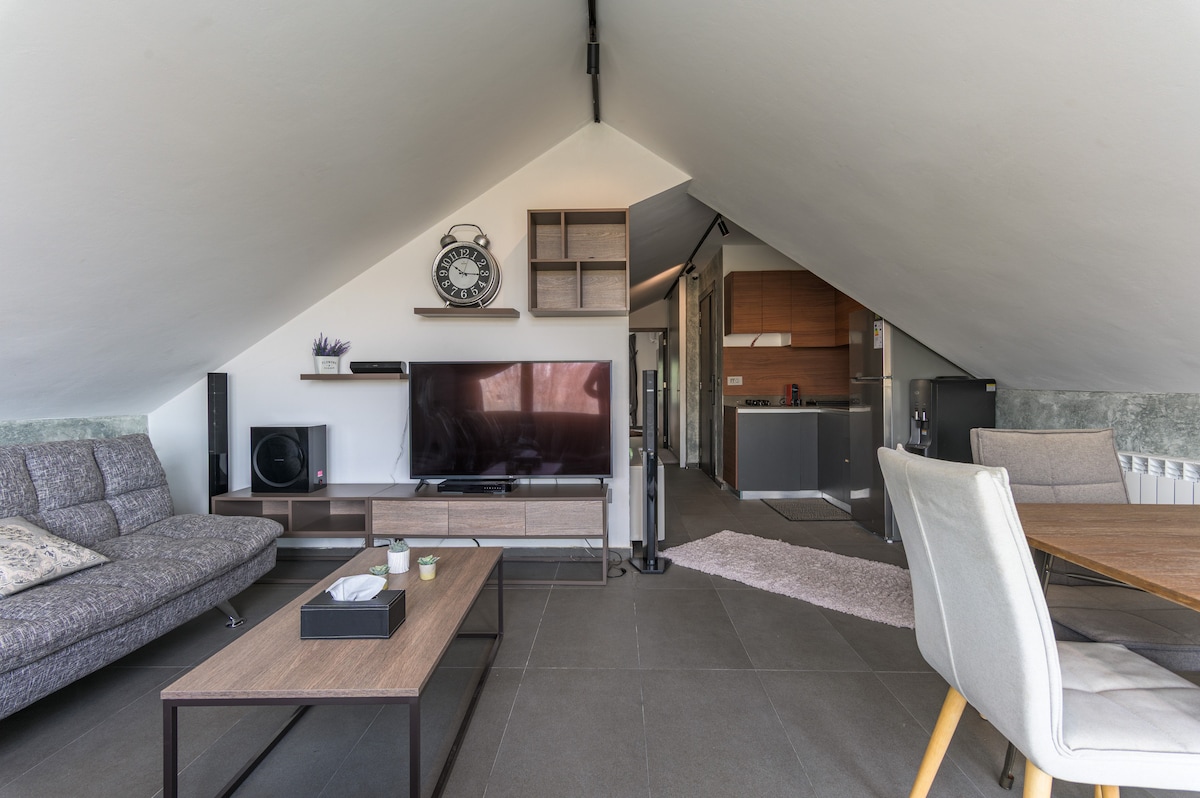 All reservations include concierge, 24/7 electricity, trip planning, and free parking. ★ "Great place, as advertised. Highly recommended." 100m² simplex with terrace and breath taking views. ☞ No checkout rules ☞ 24/7 Electricity & Heating ☞ Baby Crib and High Chair Free of Charge Upon Request ☞ 5 Minute Drive From Mzaar Ski Resort ☞ HD TV with Netflix ☞ Fast Wifi ☞ Fireplace