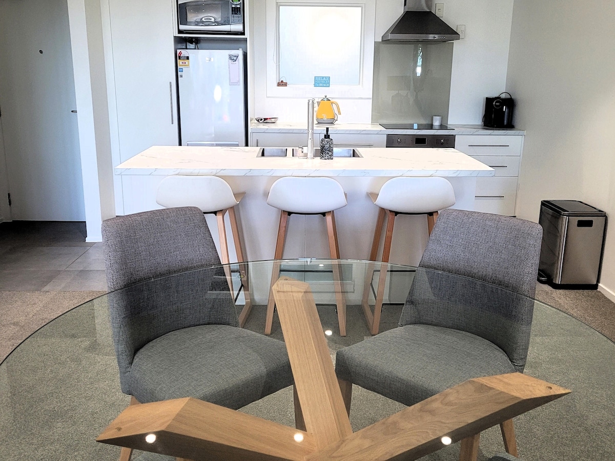 This stylishly decorated eighth floor executive two-bedroom, two-bathroom apartment boasts elevated views of Pilot Bay and Mauao. A large open plan living area flows to a private balcony where you can enjoy the everchanging vista . There is a pool, spa, sauna and gym for your leisure and the popular Mount Maunganui main beach, Pilot Bay, restaurants, shops and recreational facilities are right on your doorstep. A bonus of 2 secure carparks are available for guests as well.