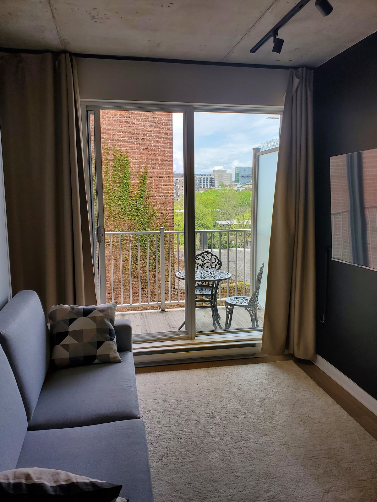 Ultra modern studio at the heart of Mile end, right across Parc Lahaie with amazing views, great ambience and wide selection of amenities at your finger tips. The kitchen comes fully equipped for you to be able to cook delicious meals, the beds are made with fresh sheets (as seen on the photos), towels are provided and many more. Whether you are here short or long-term, relocated for work or travelling on vacation, let this studio be your home while in Montreal.