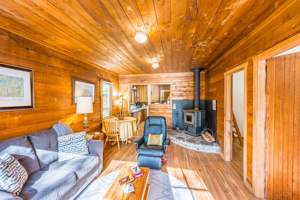 Fir Haven, located 15 minutes from town, is on 40 private acres that have been in the family for generations. The 600sf cottage looks out over a large field surrounded by forest, orchards, trails, canyons, and Siebert Creek. It's perfect for couples and close friends, with 2 dedicated bedrooms and a cozy living room. **12 y/o and above only due to safety concerns!** Explore the property, visit the pond, and walk trails looping around the 15 acre field and through acres of stunning PNW forest.