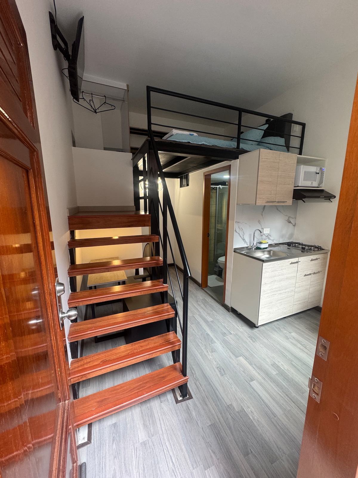 Entspanne dich in einem modernen und gemütlichen Loft – makellos und mit allem ausgestattet, was du brauchst, um dich wie zu Hause zu fühlen. Es verfügt über schnelles WLAN, eine voll ausgestattete Küche und ein sehr bequemes Bett, ideal für kurze oder lange Aufenthalte. Das Gebäude verfügt über eine gemeinsame Dachterrasse mit Blick auf die Stadt, Coworking-Spaces und eine rund um die Uhr besetzte Rezeption. Das Hotel liegt in Chapinero, einem zentralen und gut angebundenen Viertel von Bogotá. Sie finden tolle Cafés, Restaurants. Aufmerksame und freundliche Kommunikation während deines Aufenthalts.