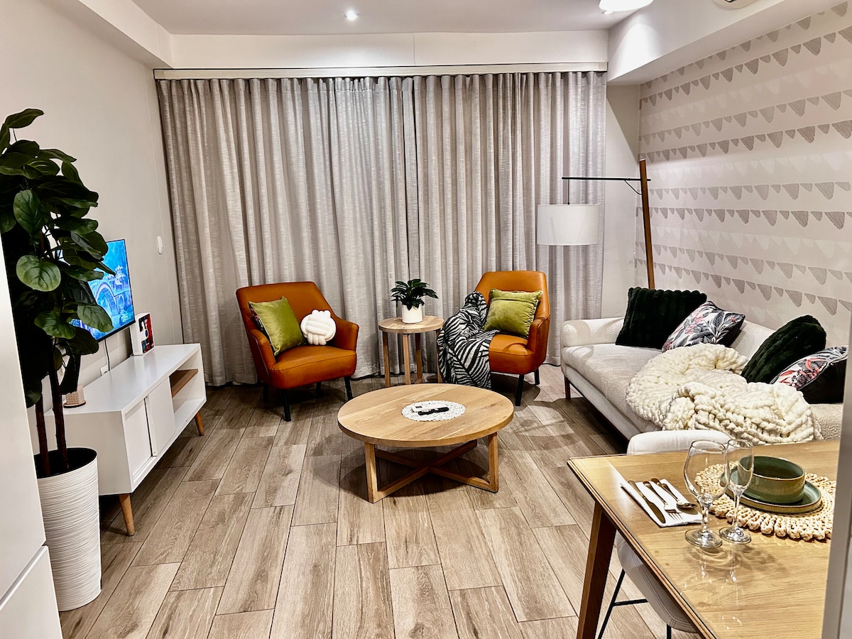 Enjoy a modern studio at The Trilogy in Menlyn Maine, Pretoria’s lifestyle hub. This self-catering apartment features a double bed, private shower, and fully equipped kitchenette. Relax with high-speed Wi-Fi and Smart TV, or explore world-class dining, shopping, and entertainment just steps away. Guests enjoy access to the rooftop pool, sky bar, and 24/7 security.This stylish place is close to must-see destinations.