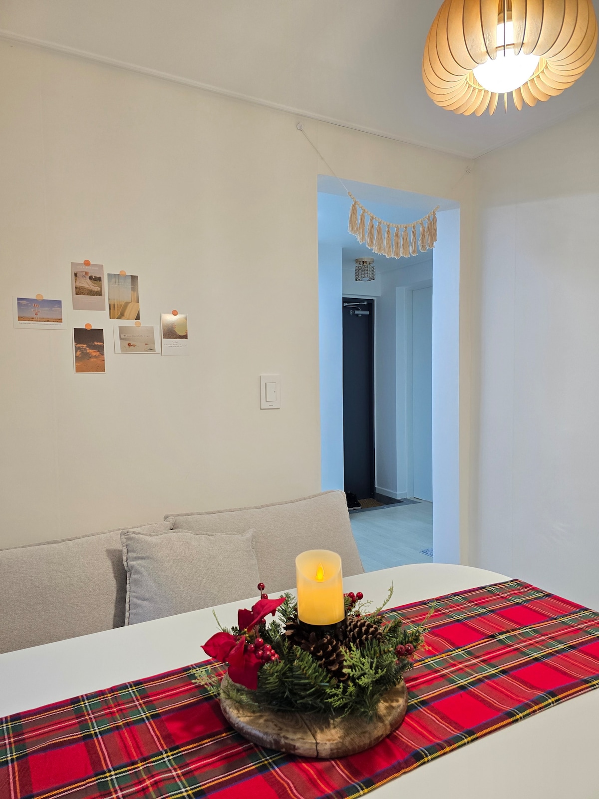 Seongsu Station/3 Zimmer/4 Queensize-Betten/1. Stock/4 Minuten zum Flughafenbus/5 Minuten zu Fuß zum Hangang/15 Minuten mit öffentlichen Verkehrsmitteln zum Seoul Forest/Netflix • Projektor