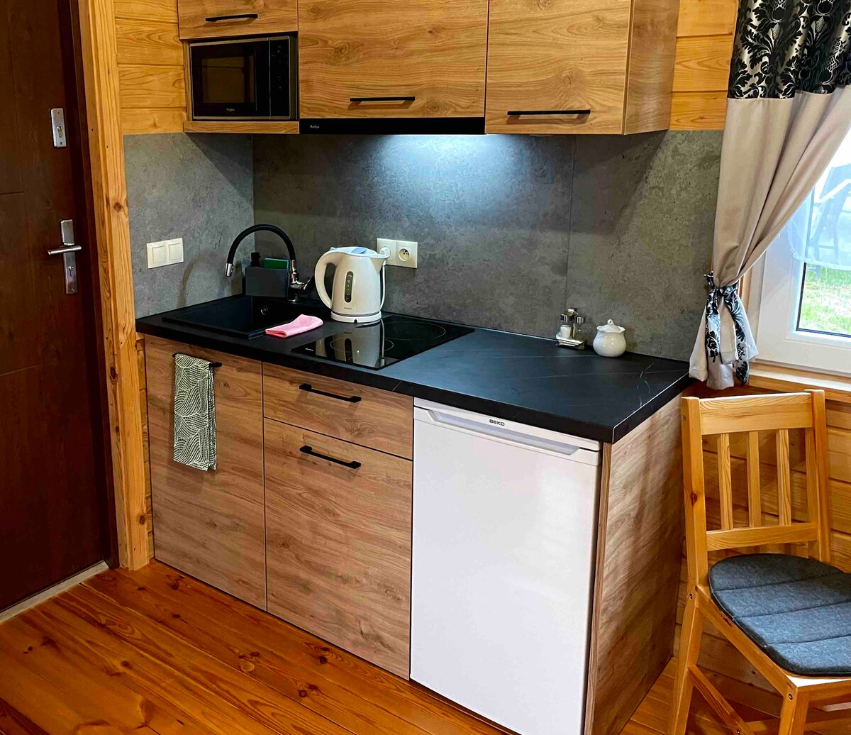 Wir haben 2 Häuser zu vermieten. 30 Meter von den Cottages entfernt haben wir den Fluss Krutynia Jedes Ferienhaus verfügt über ein Badezimmer (Dusche + Waschbecken + Toilette), ein allgemeines Zimmer mit Betten, eine Küchenzeile (Induktionsherd,Mikrowelle) mit einem Tisch. Standardmäßig kannst du für 4 Personen mieten, aber es gibt ein Zustellbett +70 zł. Das Mieten von Cottages über 4 Personen (bis zu 6 Personen kann sein) erfordert eine Rücksprache mit uns, indem du eine Nachricht schreibst. Bitte frage nach den Details mit einer Nachricht.