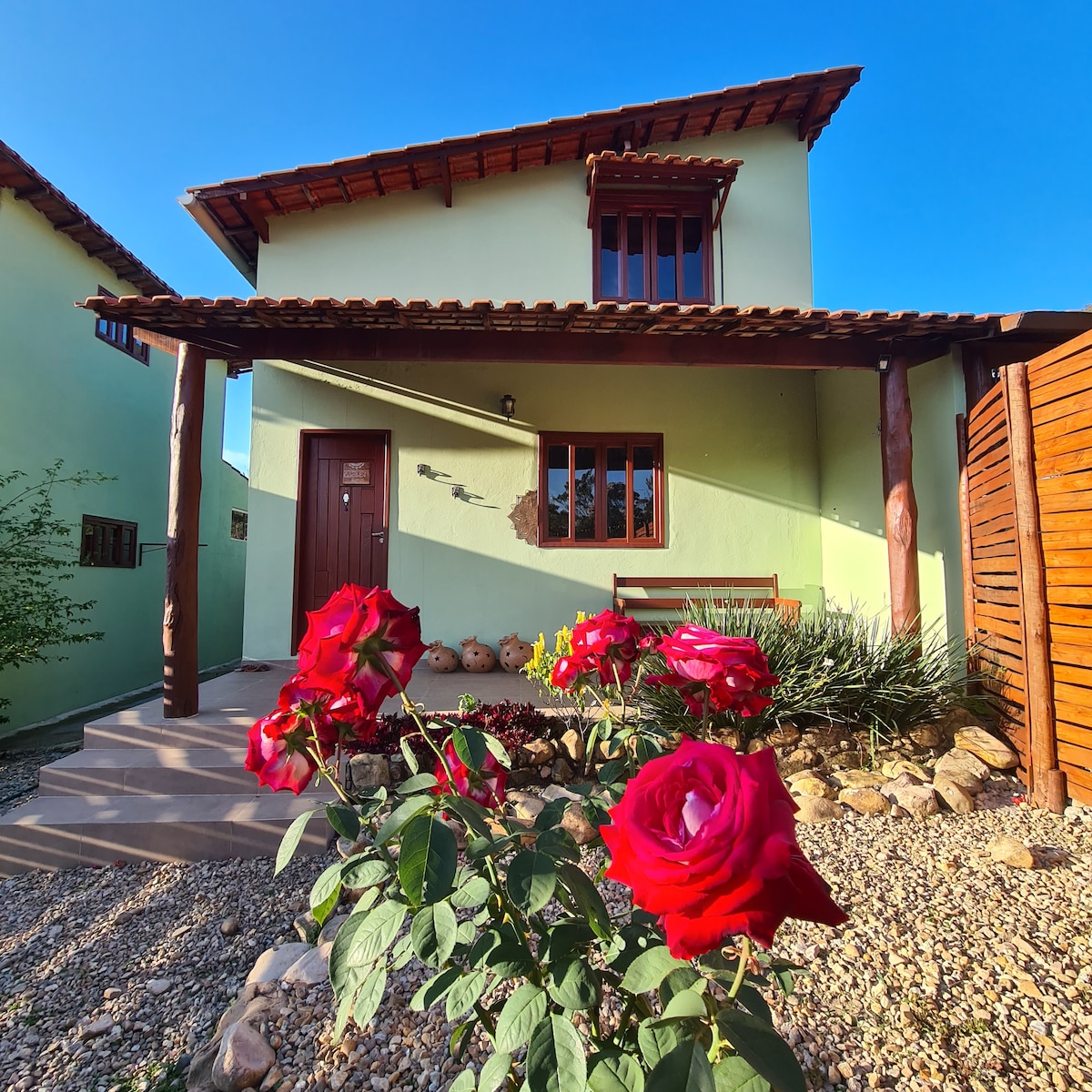 Venha desfrutar da natureza, montanhas, rios e cachoeiras e se hospede com conforto e comodidade, numa casa bem aconchegante. A Casinha hospeda 1 casal. Fica a 650 metros da vila, 10 minutos a pé, e fica localizada na rua principal que liga a Vila ao Bomba. A casa está situada em um terreno de 8 mil m2, tem vista para as montanhas e com um pequeno rio ao fundo. Tem bastante verde ao redor, com jardim, plantas e árvores.