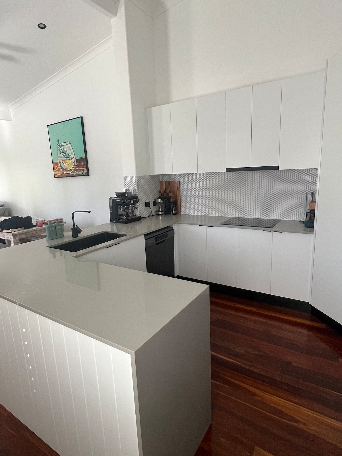 Willkommen in deinem traumhaften Rückzugsort im Bezirk Burleigh! Dieses flippige Stadthaus verfügt über zwei schicke Schlafzimmer im Obergeschoss, darunter eine Kingsize-Suite mit einem begehbaren Kleiderschrank und einem 65-Zoll-Fernseher. Genieße das Ambiente im Loft-Stil unter dem hohen Holzdach. Genieße eine entspannende Badewanne im lichtdurchfluteten Badezimmer. Unten erwartet dich eine frisch renovierte Küche mit erstklassigen Geräten und einer Nespresso-Maschine. Grillen unter den Sternen mit der zweifach gefalteten Fensterbank. Dein ultimativer Urlaub beginnt hier!