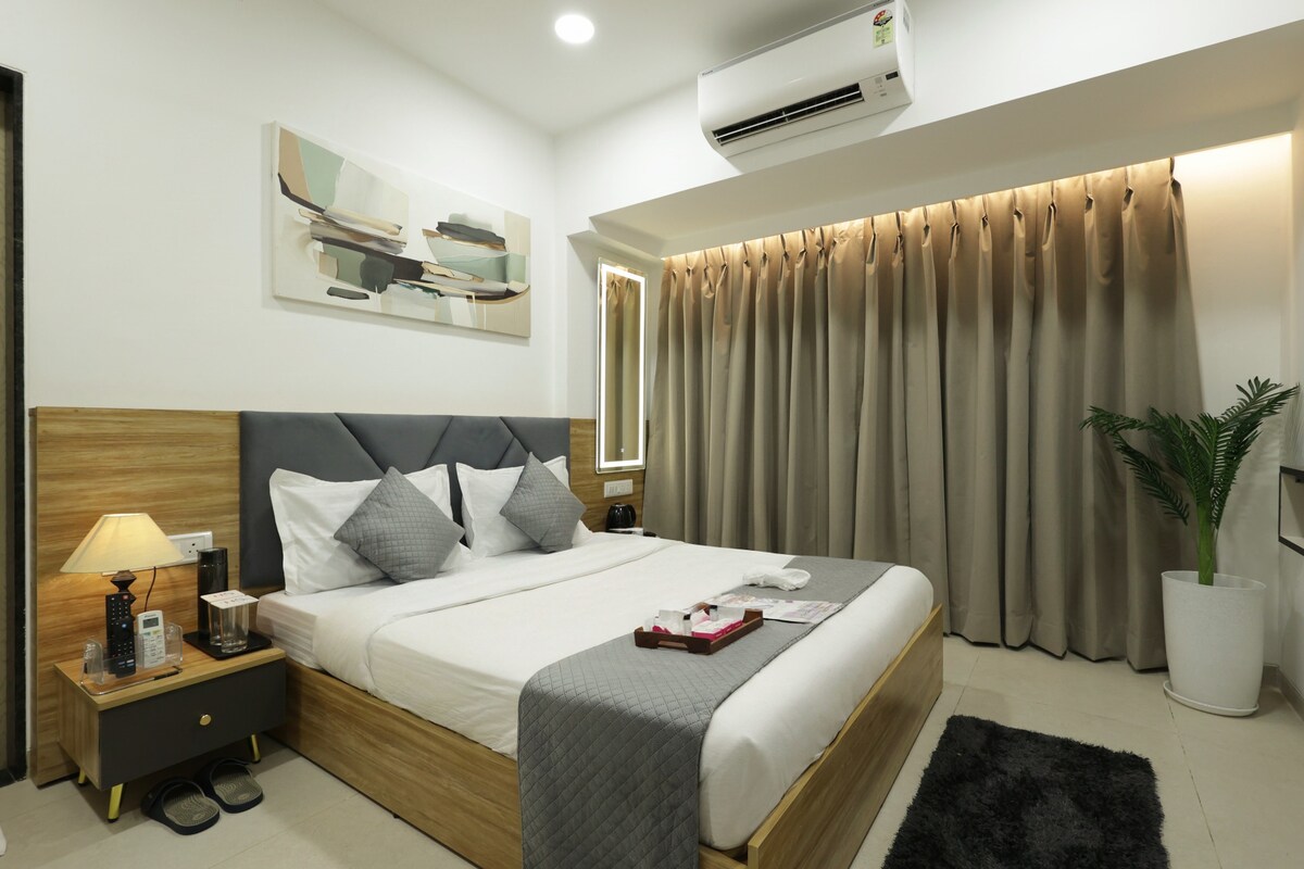 Welcome to our Premier Room in Chembur – the perfect choice for corporate guests seeking a luxurious and peaceful stay in Mumbai. This well-appointed room is designed with your comfort in mind, offering a serene ambiance where you can unwind after a busy day of work. Located in a quiet, upscale area, the Premier Room ensures a peaceful environment for both relaxation and productivity. It comes equipped with high-speed Wi-Fi, ideal for those needing to stay connected for work or meetings.