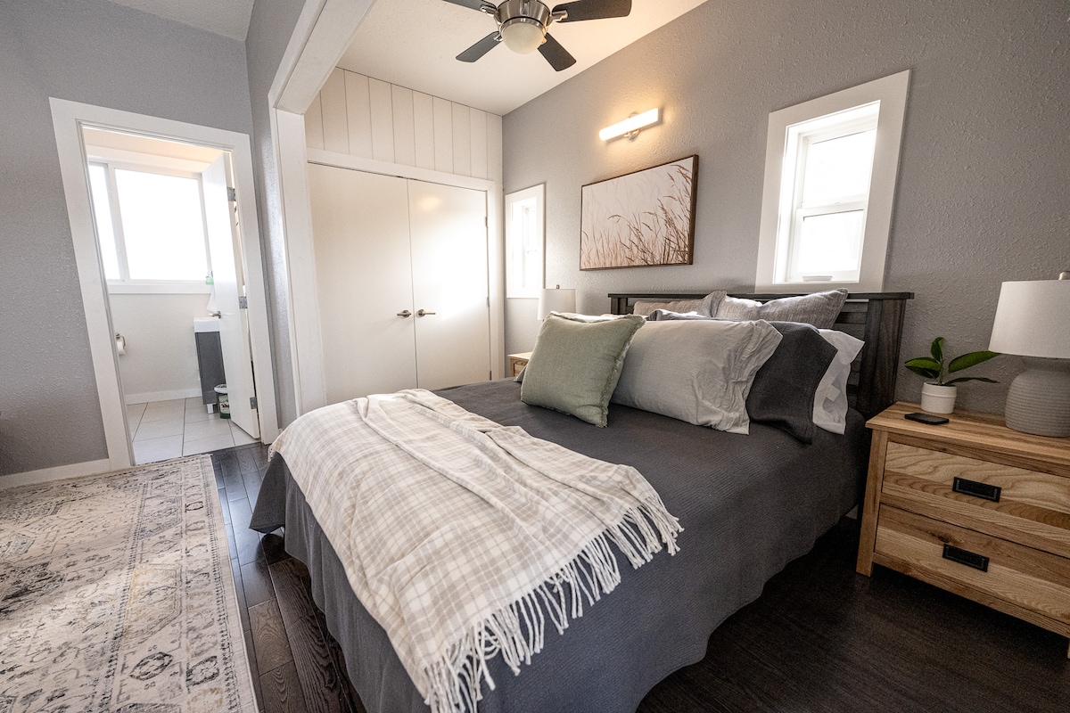 Diese helle und saubere Suite ist der perfekte Ort, um innerhalb von 20 Minuten zu Fuß zum Einkaufszentrum oder Lebensmittelgeschäft zu gelangen. Sie können auch einen kurzen Spaziergang zum Eckladen am Ende des Blocks machen oder ein wenig weiter für einen abendlichen Spaziergang um die schönen Crystal Lake Wanderwege. Im geräumigen Hinterhof kannst du dich mit einem Drink auf dem Deck oder rund um den Kamin entspannen. Für diejenigen mit Kindern gibt es einen kleinen Park direkt durch das Hintertor.