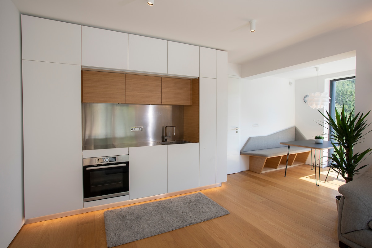 Entfliehe in eine Oase der Ruhe und des Komforts in einem ECO-Haus aus Massivholz mit einer modernen Wohnung, 20 Gehminuten vom Bleder See und 15 Minuten vom Strand am Fluss Sava entfernt. Abseits des Bled-Lärms, aber gleichzeitig nah am Geschehen. Die Umgebung ist komplett mit Wander- und Radwegen übersät. Genieße den privaten Balkon mit singenden Vögeln und Grillen und schlafe auf dem Kingsize-Bett (180 x 200) in einem angenehm kühlen Schlafzimmer (Nordseite) ein. Die Wohnung verfügt über zwei Klimaanlagen für vollen Komfort. Fühlen Sie sich wie zuhause