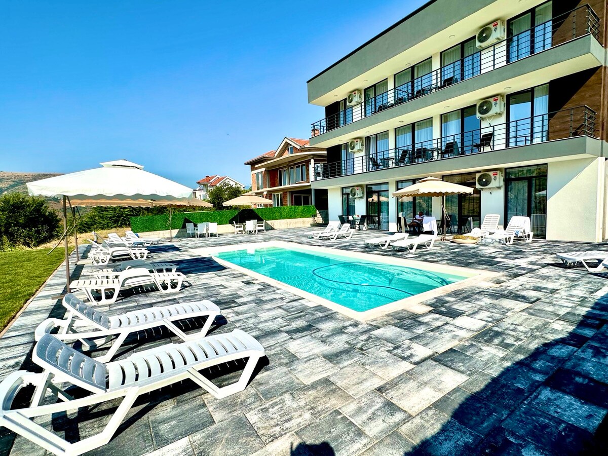 Modern, private apartment just 5 minutes from the E75—perfect for transit stays and longer visits. Only a 2-minute walk to the city center, you get both convenience and location. Enjoy free parking, easy self check-in, and a clean, contemporary space with all essential amenities. Quiet, comfortable, and hassle-free—ideal for a quick stop or a relaxed stay in Veles.