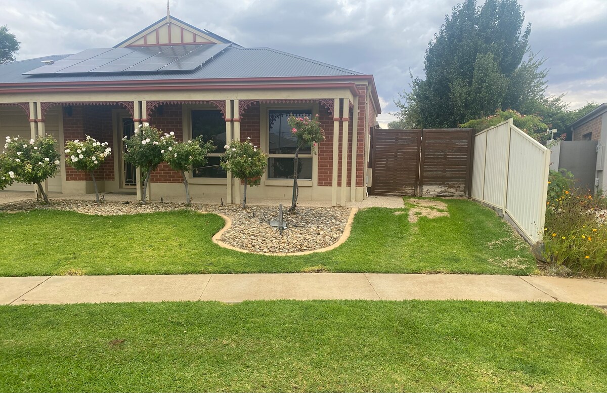 Unsere Unterkunft ist ein geräumiges, modernes Haus, das 5 Gehminuten von der Dean St (Alburys CBD) entfernt liegt. Schön eingerichtet, mit 3 geräumigen Schlafzimmern und 2 Badezimmern. Wir haben sichere, überdachte Parkplätze und einen Außenbereich, um einen Grill oder ein Glas Wein auf dem Balkon mit Blick auf den Monument Hill zu genießen. Nur einen kurzen Spaziergang vom Nouriell Park entfernt, um den Murray River zu genießen. Wir sind umgeben von offenen Grünflächen und 3 Spielplätzen für die Kinder. Wir freuen uns, dich bei uns mit einer Flasche Wein und lokalem Käse willkommen zu heißen.