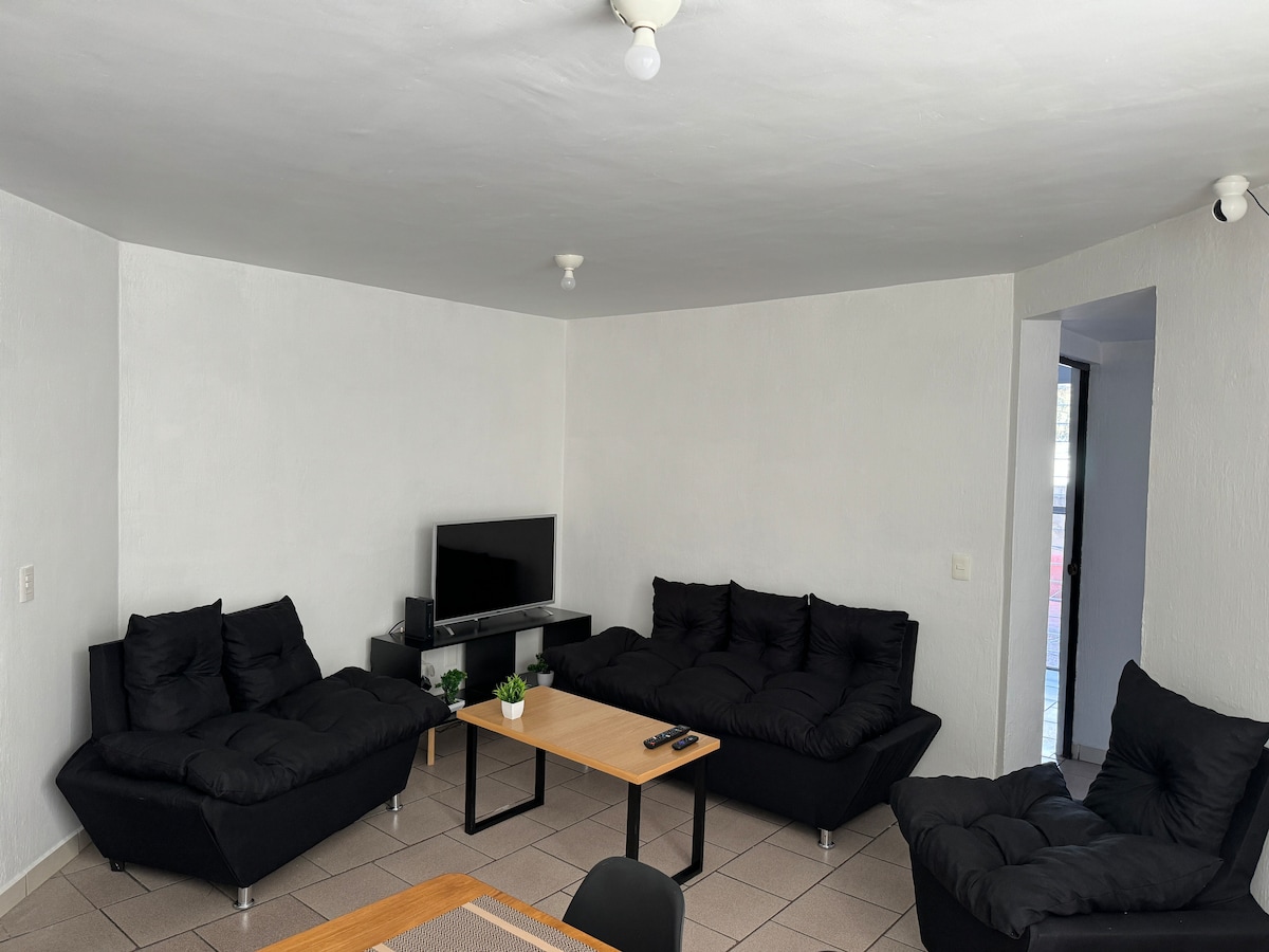 Komfortable und sichere Wohnung sehr zentral 2 Blocks von der Basilika, einen Block von der Stadtbahn, 3 Blocks vom ISSSTE und weniger als 5 Minuten Fahrt vom Telmex Auditorium entfernt, sehr gut gelegen und schön Netflix, Prime Video, Disney+, Paramount+ und Vix Premium Ventilatoren in den Zimmern und ein Parkplatz für ein kleines Auto