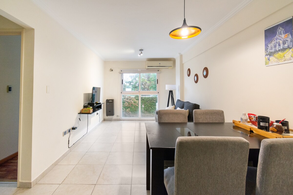 Moderner und vielseitiger Raum. Ausgezeichnete Lage und höhere Ausstattung. Ideal, um Ruhe, Arbeit und Spaß zu kombinieren. Die beste Gegend von La Plata, ganz in der Nähe des Paseo del Bosque, der Universität, der Museen und der Gastronomie. Diese Wohnung bietet eine warme und komfortable Atmosphäre. Smart-Fernseher: FLOW WiFi Klimaanlage - Heizung Mikrowelle Toaster Wasserkocher Vollausgestattete Küche mit Backofen Blanquería: Bettwäsche und Handtücher Spender: Shampoo, Spülung und Seife
